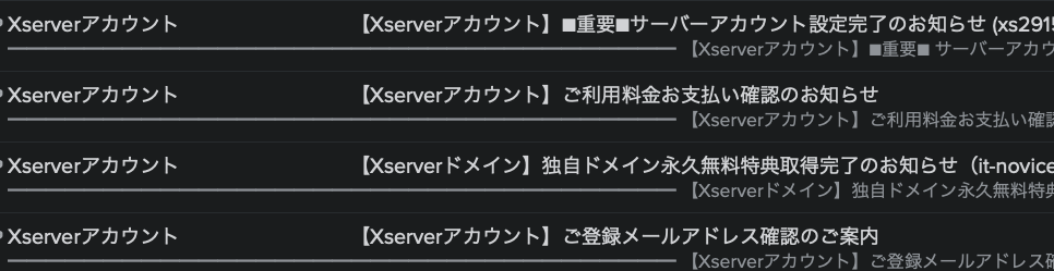 4番目のメールにはサーバーのIDやパスワード、データベース情報など重要な情報が含まれています。大切に保管してください。