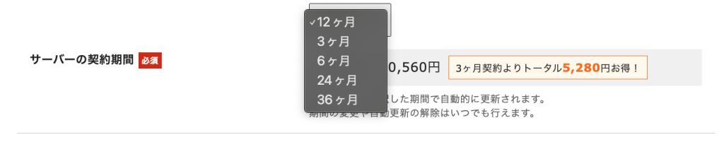 サーバー契約内容を入力